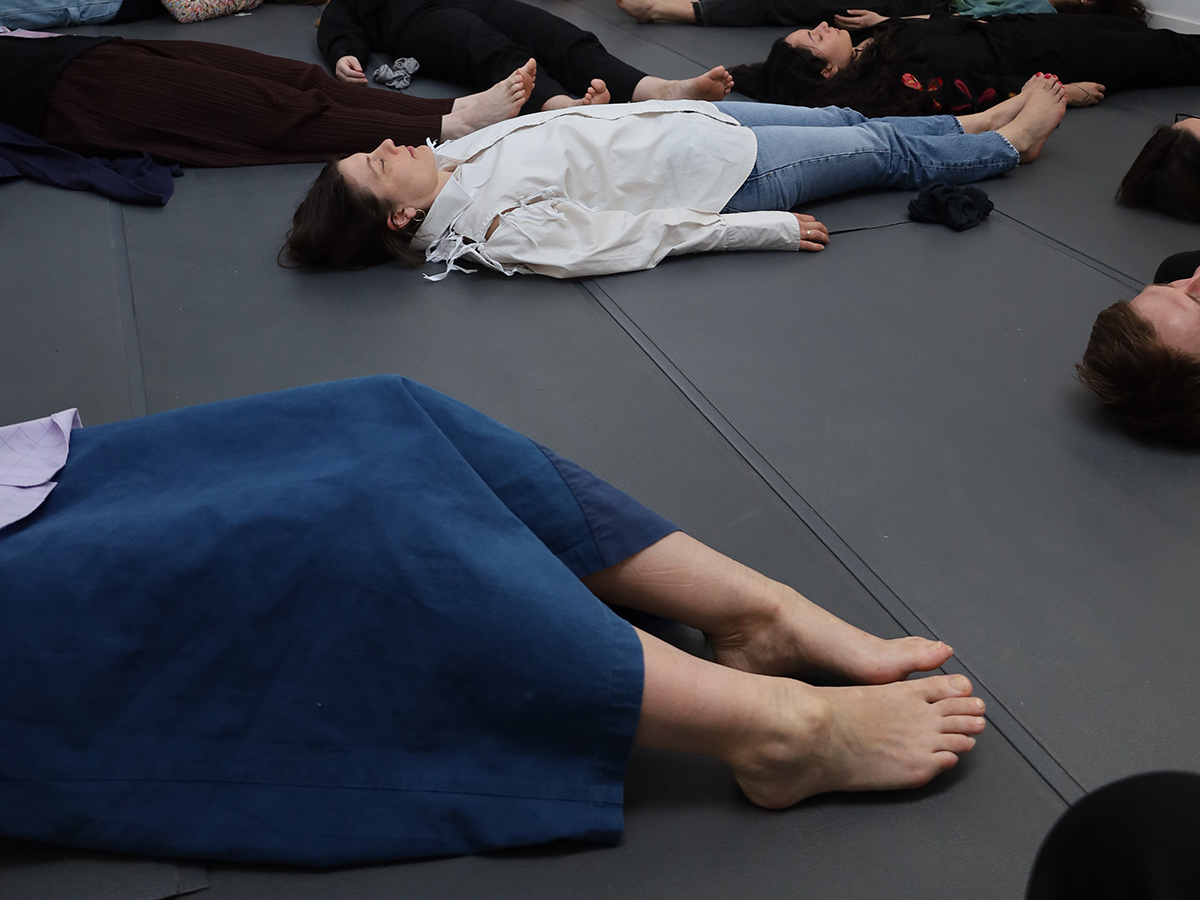 [...] is a collaborative creative practice research project that aims to encourage critical provocations and reflections on fashion as an expanded, embodied, and sensory practice. The Moving Garments Meditations are a series of participatory performances consisting of AI-guided, body movement and breath instructions inviting participants to feel moved and embody critical fashion industry issues.