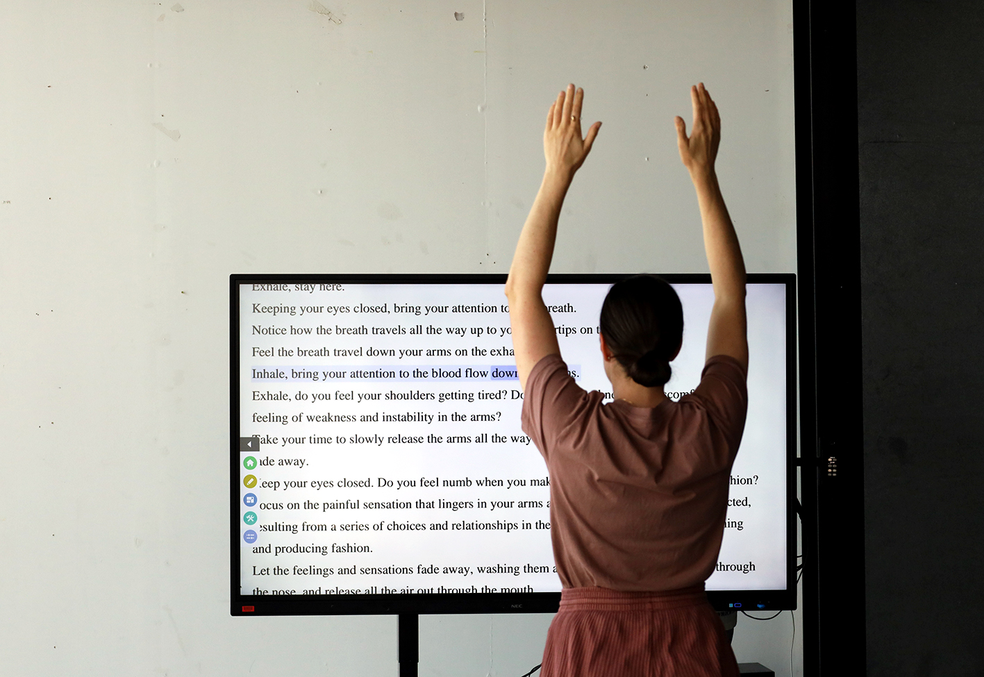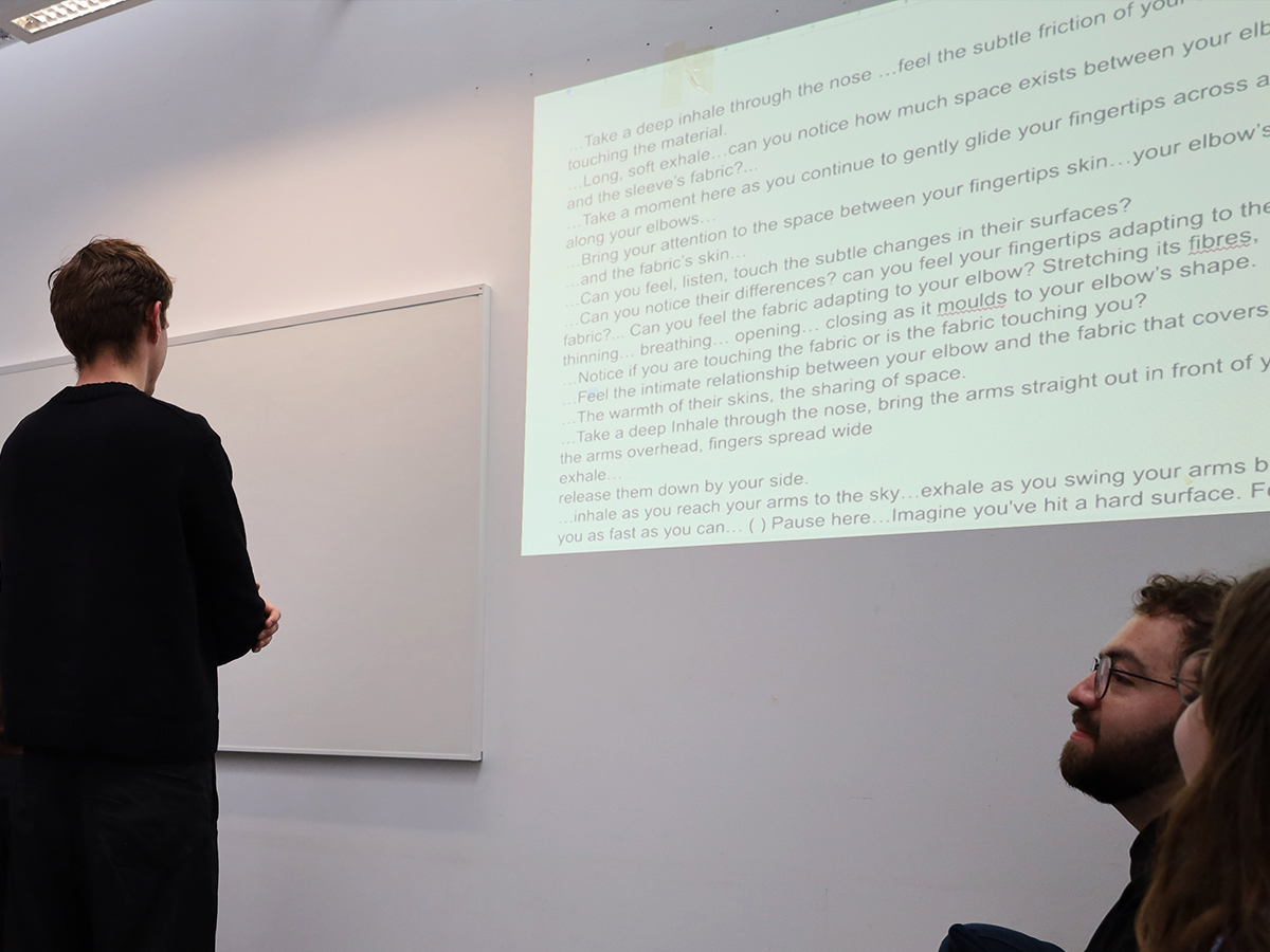 [...] is a collaborative creative practice research project that aims to encourage critical provocations and reflections on fashion as an expanded, embodied, and sensory practice. The Moving Garments Meditations are a series of participatory performances consisting of AI-guided, body movement and breath instructions inviting participants to feel moved and embody critical fashion industry issues.